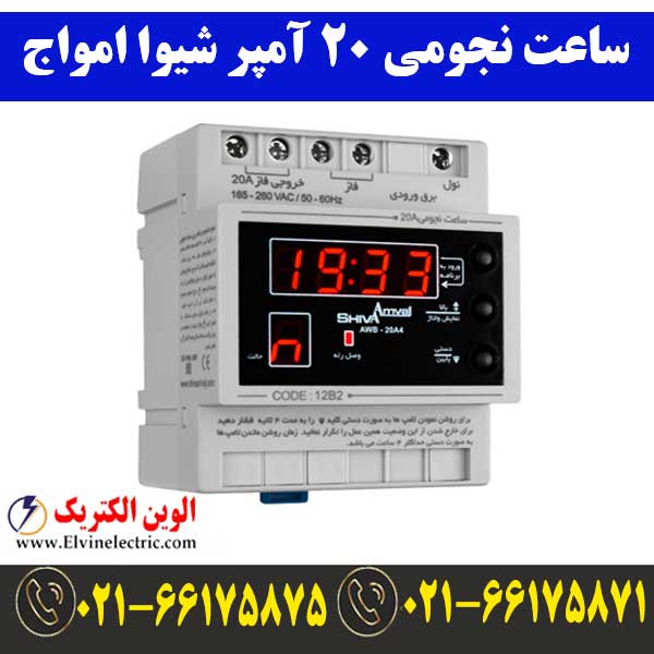 ساعت نجومی ۲۰A شیوا امواج 12B2 یکی از تجهیزاتی می باشد که در تابلو های برق صنعتی از آن استفاده می شود. با استفاده از تایمر شیوا امواج این امکان برای ما فراهم می شود تا قففه در روشن شدن یک تجهیز یا قسمتی از مدار فرمان را داشته باشیم.